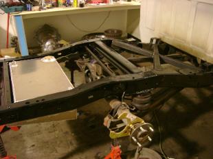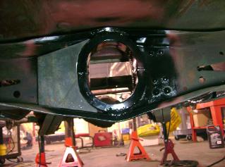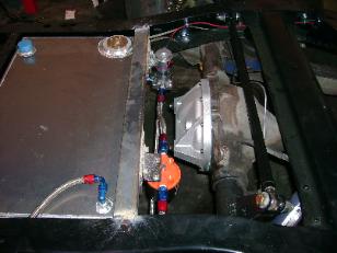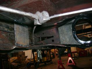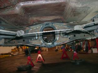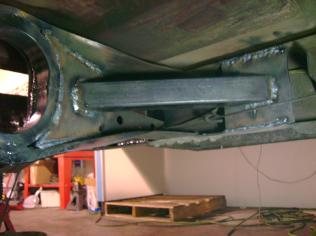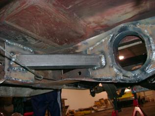Bracing of the trailing arm cross member with a custom safety loop for added strength. All pieces are hand cut and hand formed for a custom fit. Bracing was added to keep the cross member from bowing and bending do to the monster est torque from the blower motor. |